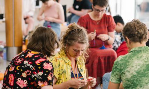 Participants first select a fabric panel, cut from materials awaiting new life. Onto this base, fibre scraps, buttons, and other sewn details will be arranged and stitched on. Explore unique combinations of both two-dimensional and three-dimensional textures, patterns, and forms to produce a wall-hanging to take home.